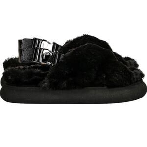 MONCLER Solarisse Black Fur Leather Warm Slingback Sandals, IT38/US8 SRP: $695