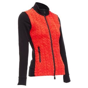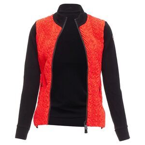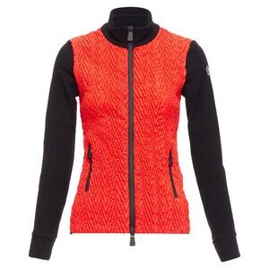 MONCLER bright red orange chevron plisse front logo arm zip fitted jacket XS