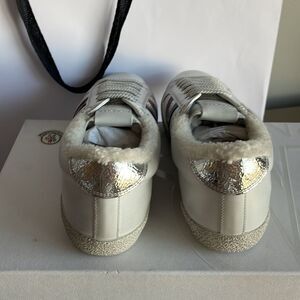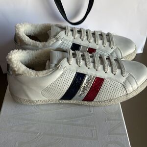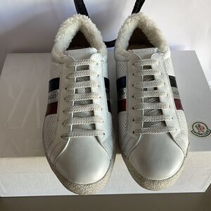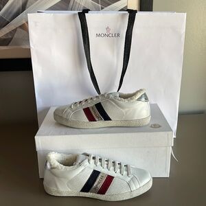 MONCLER ryegrass leather Distressed Logo White Sneakers faux fur Size 39 US 9