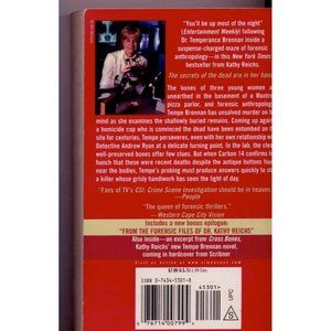 Listed here is MONDAY MOURNING by KATHY REICHS - a Temperance Brennan (TV's BONES) novel, paperback, 2005. 396 pages.