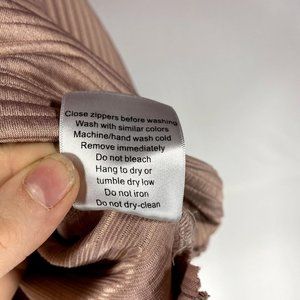 Women's MONDETTA pink, mauve, dusty rose ribbed side zip detail pullover sweatshirt.