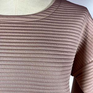 MONDETTA Dusty Pink Ribbed Sweatshirt Women's Medium Side Zip Long Sleeve Boxy