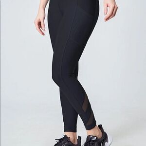 Finally, the legging you've been looking for. This active legging has high-waisted sculpting compression & 4-way stretch w/handy side pockets for your essentials. The sheer trim detailing has trendy breathability & moisture wicking properties.