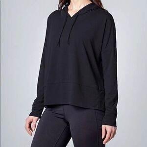 This trendy, oversized pullover with an allover RIBBED TEXTURE & hooded design. Lightweight fabric with moisture wicking properties makes this the perfect pre&post workout style!
