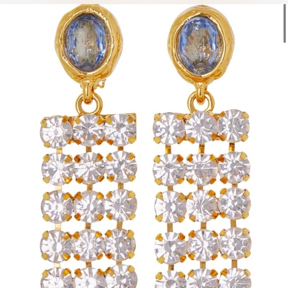 gorgeous mondo mondo earrings with rhinestones and blue crystal stone. worn once. retails for 250