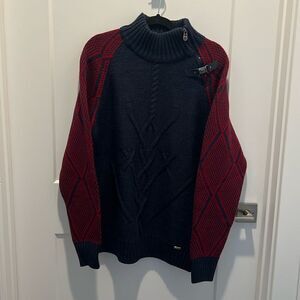 Beautiful details, zipper closure and buckle closure. Please note colors may appear lighter or darker by lighting. Colors are a dark navy blue and red.