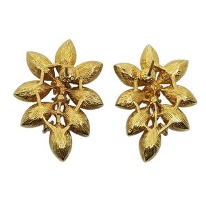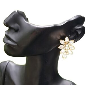 MONET 1980s GOLDTONE & WHITE RHINESTONE FLORAL DESIGN STATEMENT EARRINGS