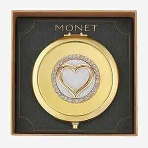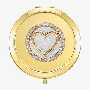 Features: Hearts with clear gemstones, 1 regular mirror, 1 magnified, snap closure, and box included.