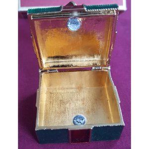 MONET "Green & Red Holiday Gift" Collectible Enamel Crystal Rhinestone Trinket Box