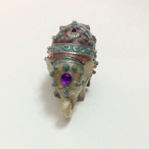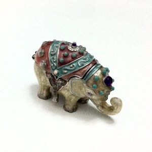 Add a touch of bohemian elegance to your collection with this beautiful Monet Enamel Elephant Trinket Box with a lid.