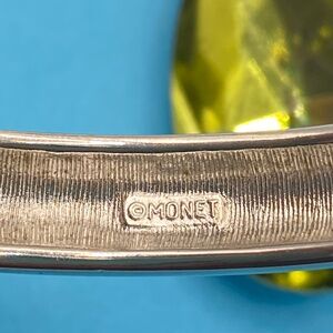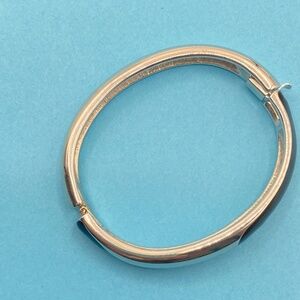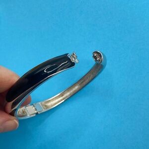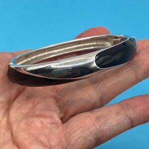 MONET Silvertone & Black Enamel Hinged Bangle Bracelet. Very good condition, appears only gently worn, if at all. No scratched or wear. #19
