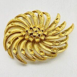 MONET Swirled Floral Pin Gold Tone Textured Nature Garden Trees Flowers Classic