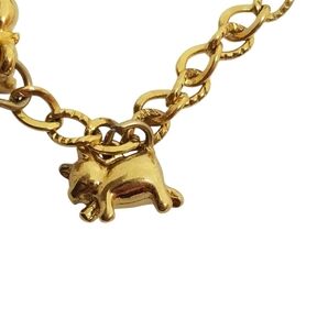 MONET VINTAGE 80S GOLDTONE MAMA PIG & PIGLETS CHAIN BROOCH
