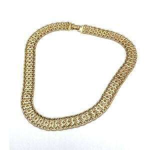 MONET Vintage Necklace Flat Collar Gold Tone Statement 16”Estate