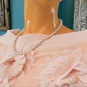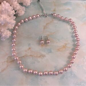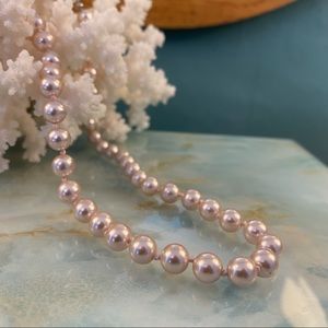 EUC pink faux pearl necklace and pierced stud earrings from MONET. Adjustable length. Knotted between each pearl. Silver tone lobster claw clasp. Monet hang tag. Only one previous owner. Beautiful on its own or layer for an on trend pearlcore look. Great for a bride looking for something old.