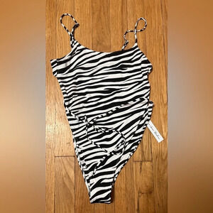 MONICA HANSEN BEACHWEAR Revolve Bardot One Piece thick zebra stripes