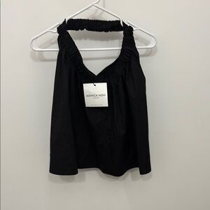 MONICA NERA Black Sleeveless Backless Ruched Tank Top
