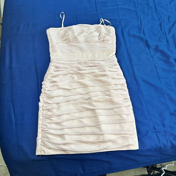 MONIQUE LHUILLIER Bridesmaid Ruched Fitted Light Pink Strapless Sheath 14 *flaws