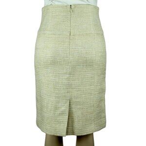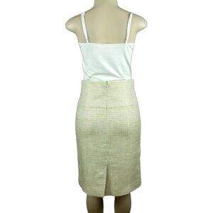 Cream and Metallic Monique Lhuillier knee length skirt has wide waist band and hidden zip closure.