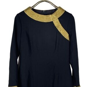 MONIQUE LHUILLIER LONG SLEEVE PIPE TRIM GOLD BLACK SHEATH COCKTAIL DRESS