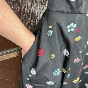 This elegant black maxi dress features a beautiful floral pattern, perfect for any special occasion. The dress offers a flattering fit with a sophisticated design.