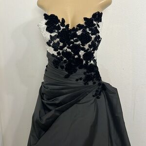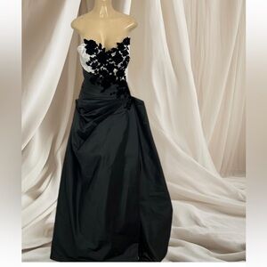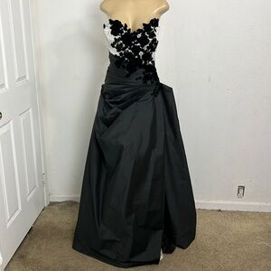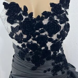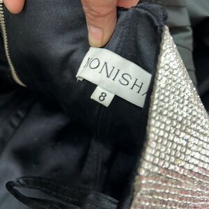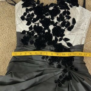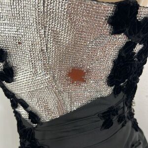 MONISHA BLACK SILVER TOP 3D FLORAL GOWM DRESS SIZE 8