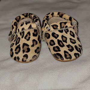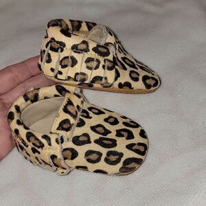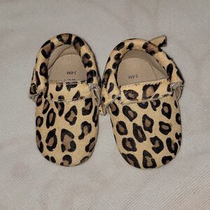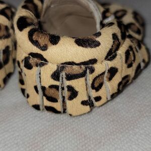 MONKEY FEET Cheetah Print Soft Bottom Leather Moccasins w Hair Size 3-6 months