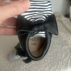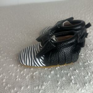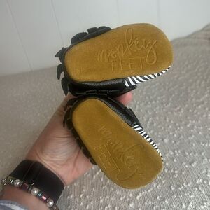 MONKEY FEET Blaxk Zebra Moccasin Shoes 3-6M 3M 6M