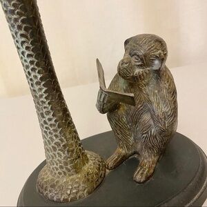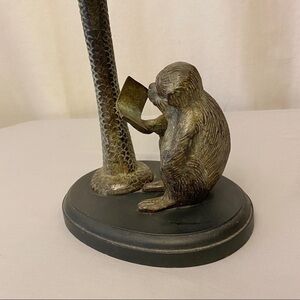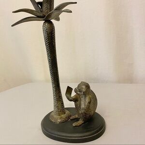 MONKEY Reading Preowned Candle Holder Decor Figurine Ethnic / Jungle / Africa / Rustic. This adorable monkey is studying his book. This candleholder is metal with a nice patina look. You can use as a taper candle holder. I prefer it without a candle as a cute accent piece. He goes with any decor. Perfect for home or office. Height measures approx 9.5”. Width measures approx 9”. Depth measures approx 7”. Weight is approx 5 pounds.
