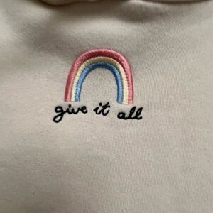 MONKI Give It All Off White Give It All Rainbow Crewneck Sweater Size XS