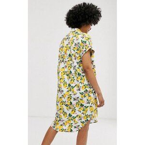 MONKI Women's Lemon Print Shirt Dress Size XS In White