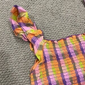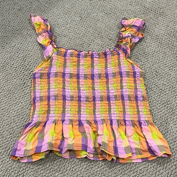 MONKL TOP! Size medium, gently used and in excellent condition! Purple, orange and green checkered top. So cute.