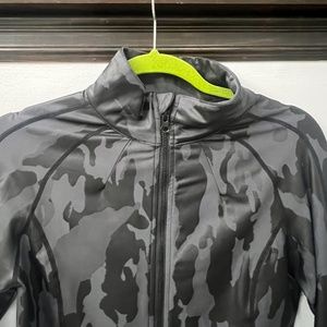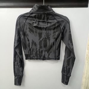 *Product Details: Mono B Women’s Black Long Sleeve Jacket. Crop Length. Spotted/Camo Print Design. Stitched Lining. Full Front Zip-Up Closure. High Mock Neckline. Cuffed Wrists with Thumb Holes. 82% Polyester/18% Spandex Material. Machine Wash Cold/Do Not Dry Clean.