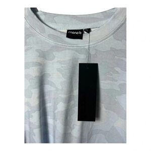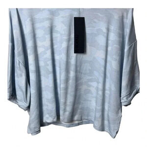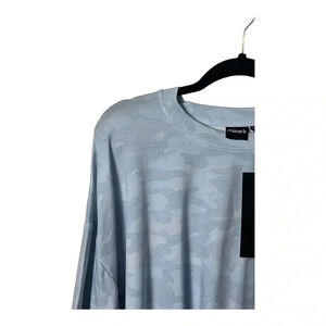 MONO B SHORT SLEEVE CROP TOP OVERSIZED BLUE CAMO IN COLOR SIZE 1X CUFFED SLEEVES