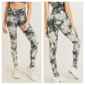 MONO B Tie-Dye Legging Green Brown High Waist Size Large Boho