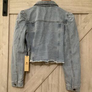 MONO B-PUFFED SLEEVE CROPPED DISTRESSED LIGHT DENIM FALL JACKET-NWT-SIZE- M