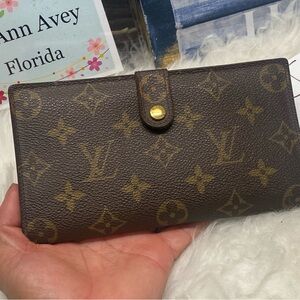 Preloved wallet vintage in good condition as 26 yrs old in monogram print no crack in canvass, no sticky but has a little dry peeling inside by the bill compartments but it wont affect the usage because its useable, hardwares has some fade but its all working good, has cc slots, bill and coin compartment, has minor rubs/scratches, no bad smell and no major stains, pls check photos for more details with no inclusions.