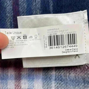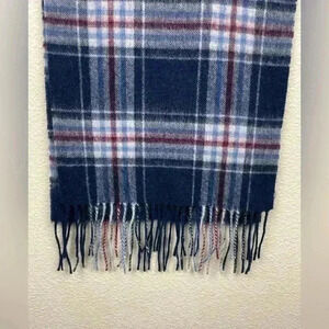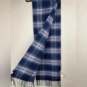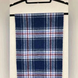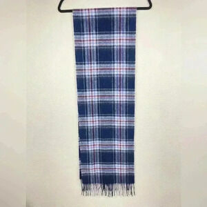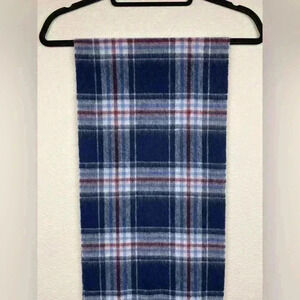 MONOPRIX Unisex One Size 100% Wool Fringe Scarf Blue Plaid Minimalist Essentials