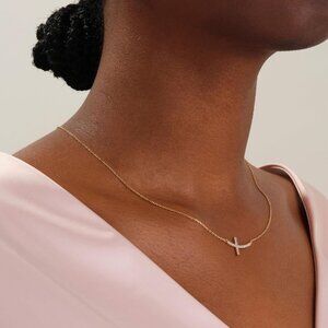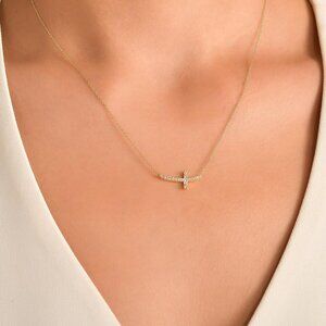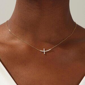 MONOZO Gold-Sideway Diamond Cross Necklace for Women,14K Gold Plated