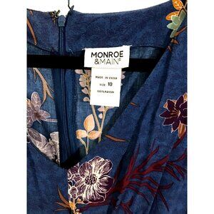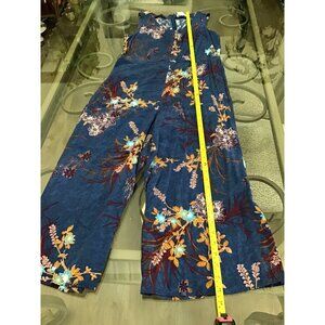 MONROE & MAIN WOMENS NAVY FLORAL ZIPUP CLOSURE STRAIGHT LEG JUMPSUIT SIZE 10