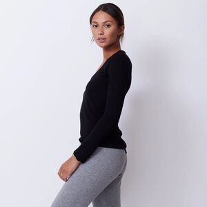 MONROW Black Fitted Long Sleeve V Neck Tee T-Shirt Casual Revolve Size XS New