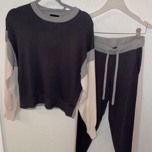 MONROW Color Block Gray/Tan Two-Piece Knit Jogger Set Size S/M