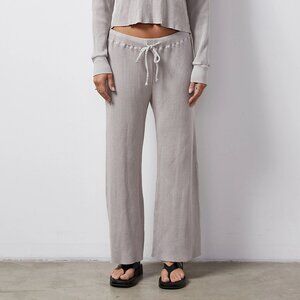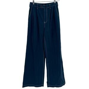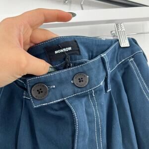 MONROW Cotton Twill Wide Leg Trousers Dark Denim High Rise Stretch Zip 28 NEW