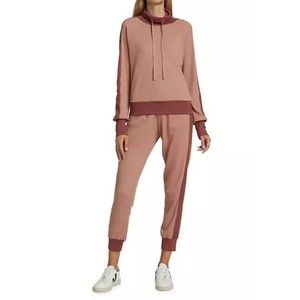 MONROW Funnel Neck Colorblock Sweatshirt Dry Rose Pink Sweater Size S NEW