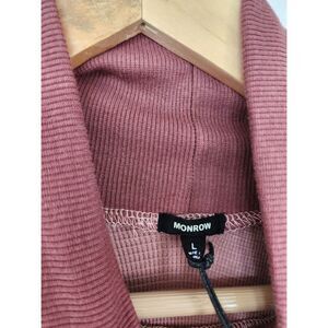 Stay cozy and stylish with this MONROW Funnel Neck Colorblock Sweatshirt in a soft Dry Rose Pink hue. Designed with a modern funnel neck and pieced colorblock panels, this sweatshirt adds a unique touch to your off-duty wardrobe. The soft thermal fabric and relaxed fit make it ideal for lounging or layering.