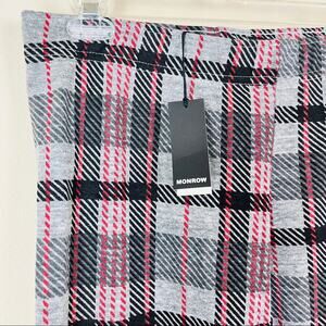 MONROW Gray Plaid Ankle Crop Pants XS 90s Sweatpants Comfort School Preppy Y2K