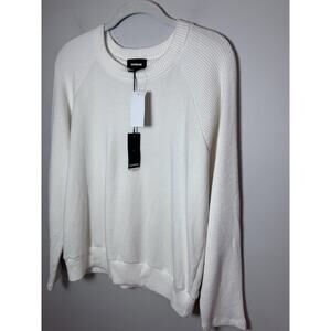 MONROW Ivory Ribbed Crewneck Sweater Pull Over Women's Sz Large NWT