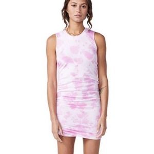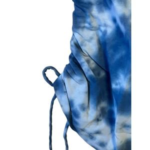 MONROW •L• Black Out Tie Dye Tank Dress Shirred Ruched Light Navy Blue NEW!.
