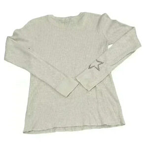 MONROW LONG SLEEVE THERMAL CREW NECK WITH Studded Stars Off White Small
