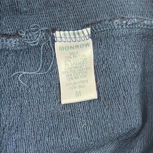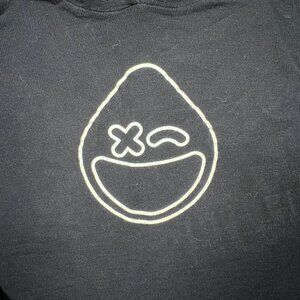 MONROW Long-Sleeve Hooded Cropped Sweater Navy Lounge Med Smiley Face Thermal